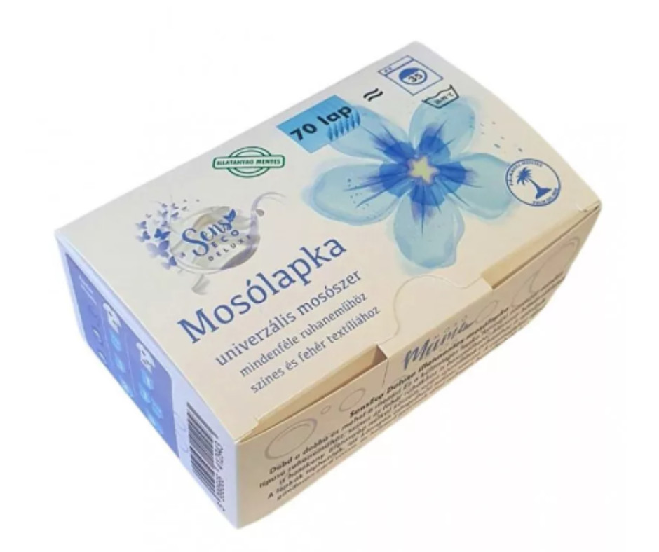 A 70 lapos mosólapka kb. 35 mosásra elegendő átlagos szennyezettségű ruha esetén, 6 kg kapacitású mosógéppel használva.